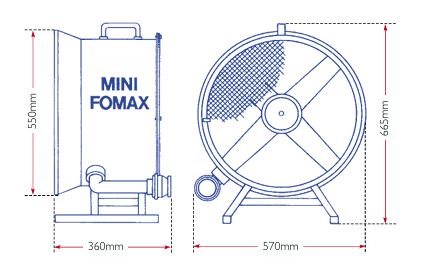 Verzia Mini Fomax s odsávaním dymu je ideálna na použitie ako odsávač dymu. Jednotka môže byť dodaná so 7,5 m dlhým potrubím na odsávanie dymu, ktoré umožňuje jednoduché pripojenie pomocou rýchloupínacieho popruhu.